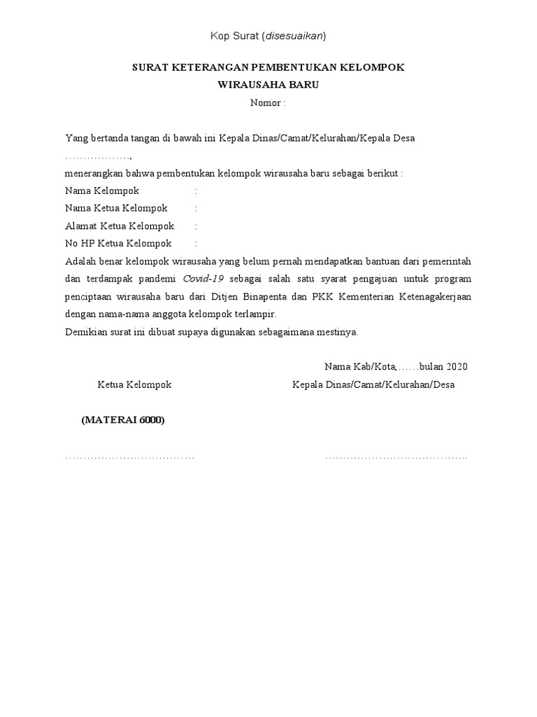 Surat Keterangan Pembentukan Kelompok Format Pdf