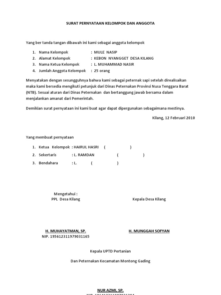 Surat Pernyataan Kelompok Dan Anggota Pdf